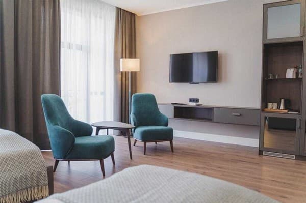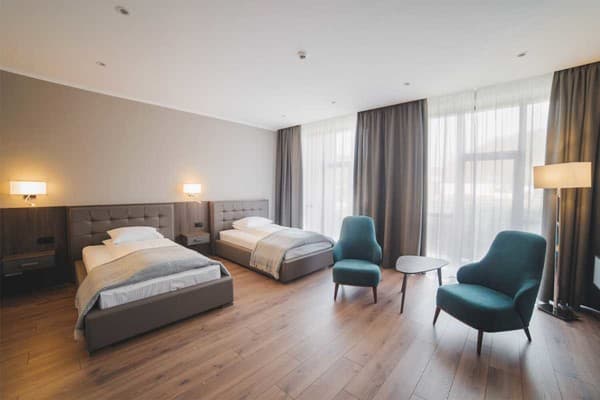Дети до 6 лет,без предоставления дополнительного места, размещаются бесплатно.Стоимость дополнительных мест уточнять при бронировании. Дополнительные места предоставляются не во всех номерах.